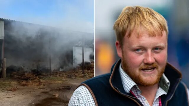 Na manhã de quarta-feira, Kaleb compartilhou uma foto no Instagram que mostrava a fumaça saindo de seu celeiro, que ainda estava de pé, mas no qual toda a palha que estava armazenada dentro havia sido destruída.