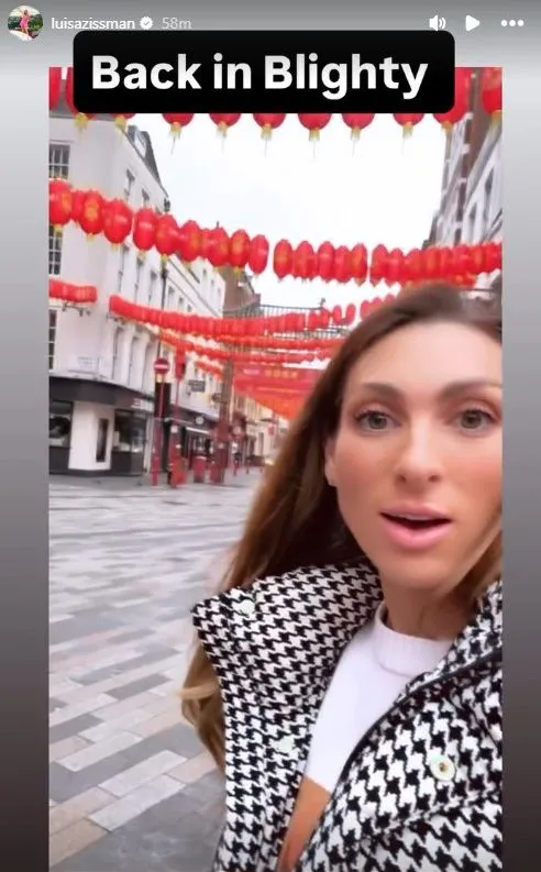 Luisa, que se mudou para Dubai em dezembro com dois de seus filhos e o marido Andrew Collins, atualizou seus 712 mil seguidores no Instagram dizendo-lhes que estava “de volta a Blighty”.