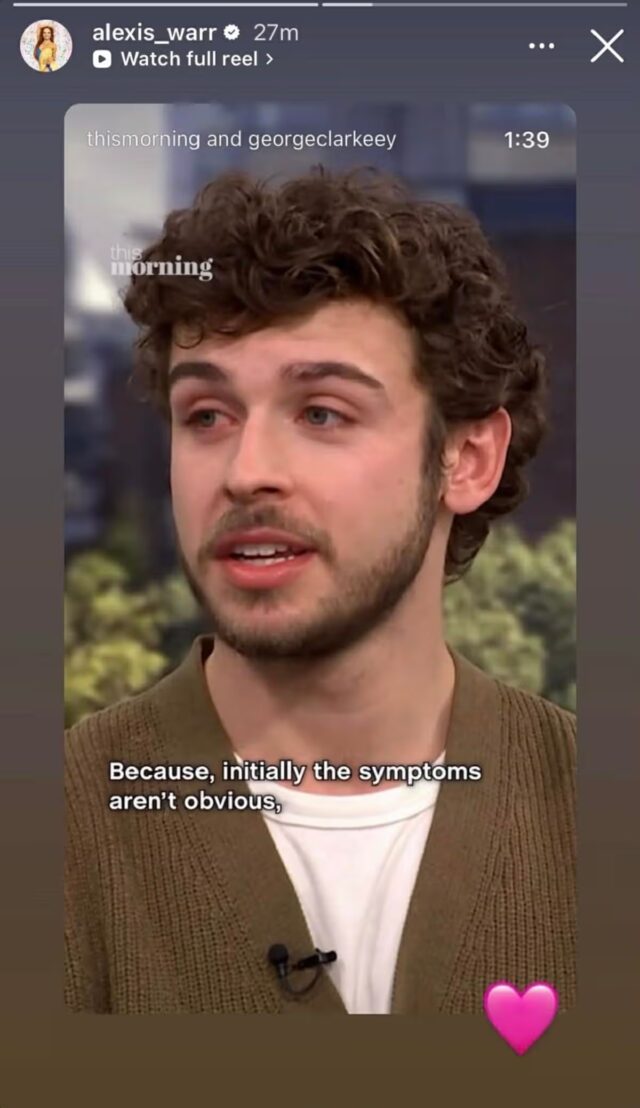 Após sua aparição no This Morning, um clipe do bate-papo foi compartilhado no Instagram, onde seus amigos e fãs do Strictly foram rápidos em mostrar apoio. Mas Alexis foi vista compartilhando novamente o importante bate-papo com seus próprios seguidores, também adicionando um emoji de coração rosa em sua história no Instagram.