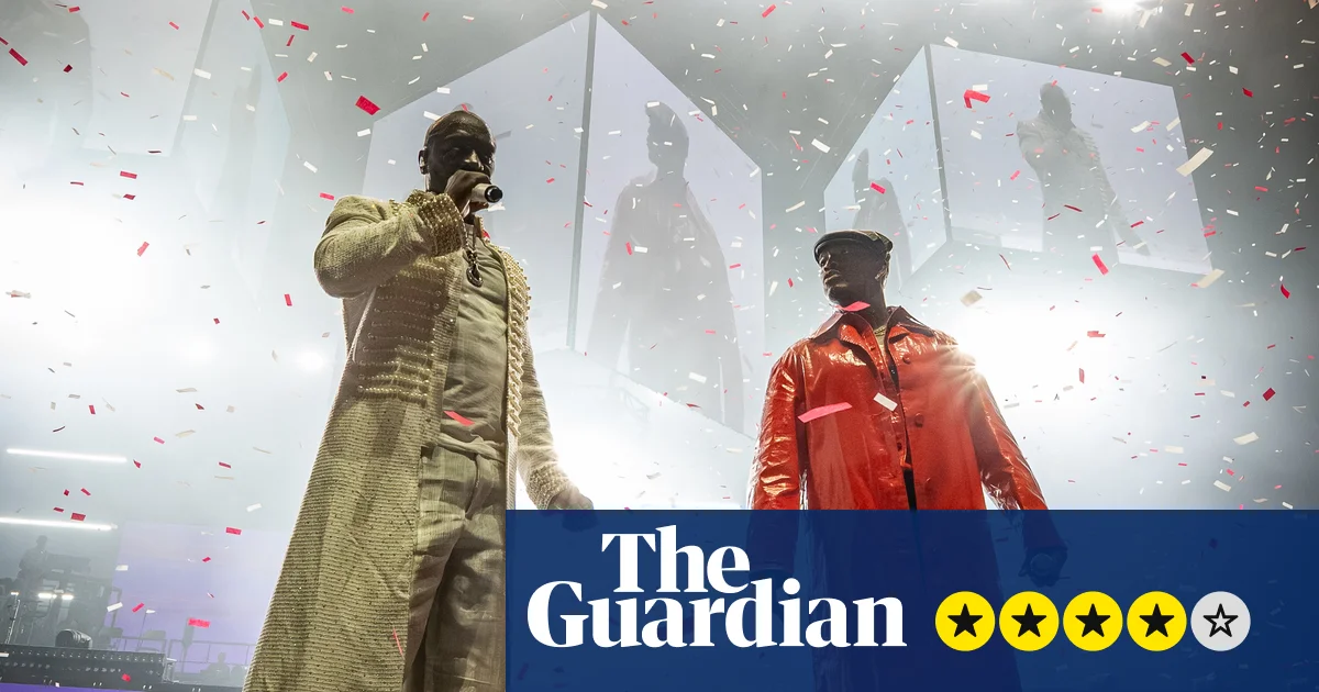 Ao longo de pouco menos de três horas, a dupla se reveza no centro das atenções, o clima oscilando de acordo com cada um deles. Começando com um trecho de The Means You Make Me Really feel, de Jackson, antes de seguir para seu hit de 2008, Miss Impartial, Ne-Yo é suave e suave em seus vocais e coreografia hábil, um contraste eficaz com o carisma whole e a energia de festa de Akon que chega com clássicos como Smack That – a primeira vez, de muitas, que o público perde completamente o controle.