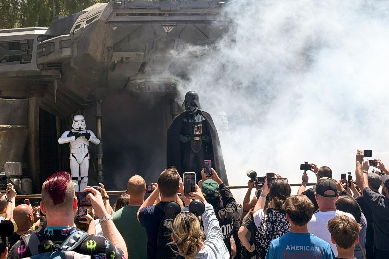 Nem toda multidão aplaudirá e aplaudirá alegremente um vilão conhecido e notório. Mas os fiéis da Disneylândia certamente o farão, como quando Darth Vader pisou no parque Star Wars: Galaxy’s Edge na manhã de quarta-feira e o público explodiu em gritos de aprovação.