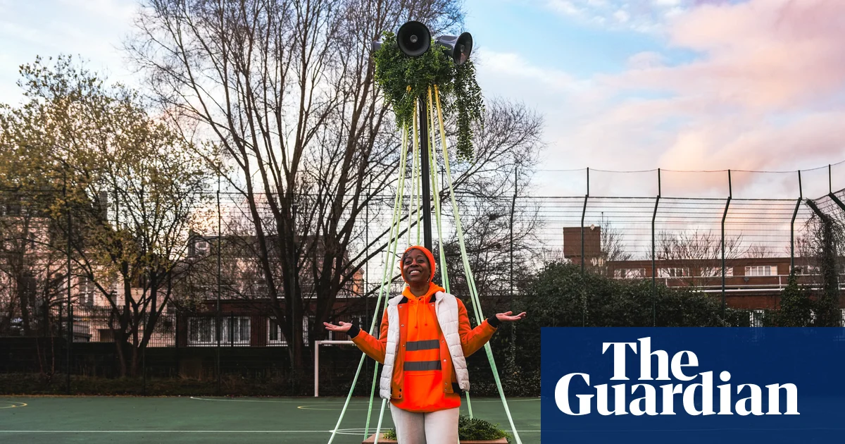 Este é o mastro fantástico e inspirado na ficção científica de Kamala. Possui cordas de luz LED programadas em vez de fitas, alto-falantes escolares Tannoy na coroa e uma caixa de graves estrondosa na parte inferior. Um “sistema de luz e som”, como ela chama. Depois de revelá-lo em fevereiro no competition Mild Up Kilburn, “fiquei inundada”, lembra ela, quando “crianças, pais, idosos” se aglomeraram nele junto com alguns ravers idosos. “Tínhamos o canto dos pássaros tocando nos alto-falantes durante os momentos de silêncio, e os periquitos selvagens cantavam junto! Foi tão surreal.”