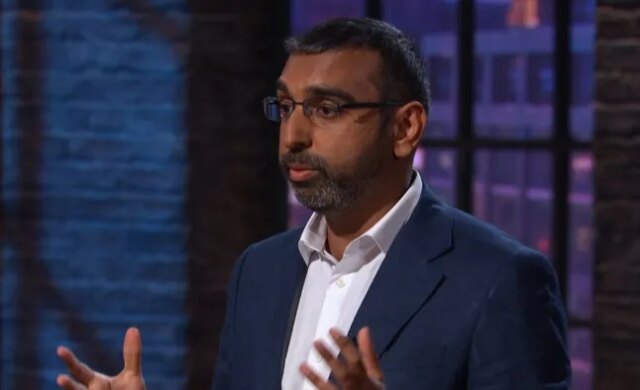 O ex-diretor do Goldman Sachs, Jinesh Vohra, apertou a mão de Peter Jones, Deborah Meaden e Touker Suleyman depois de lançar seu aplicativo, que se concentra em controlar pagamentos indevidos de hipotecas, para economizar no pagamento de juros no longo prazo.
