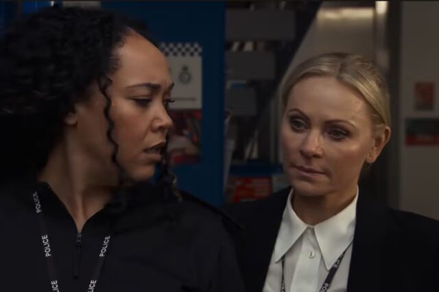 A sargento detetive foi ouvida discutindo violência doméstica com sua colega, PC Jess Heywood, em cenas comoventes