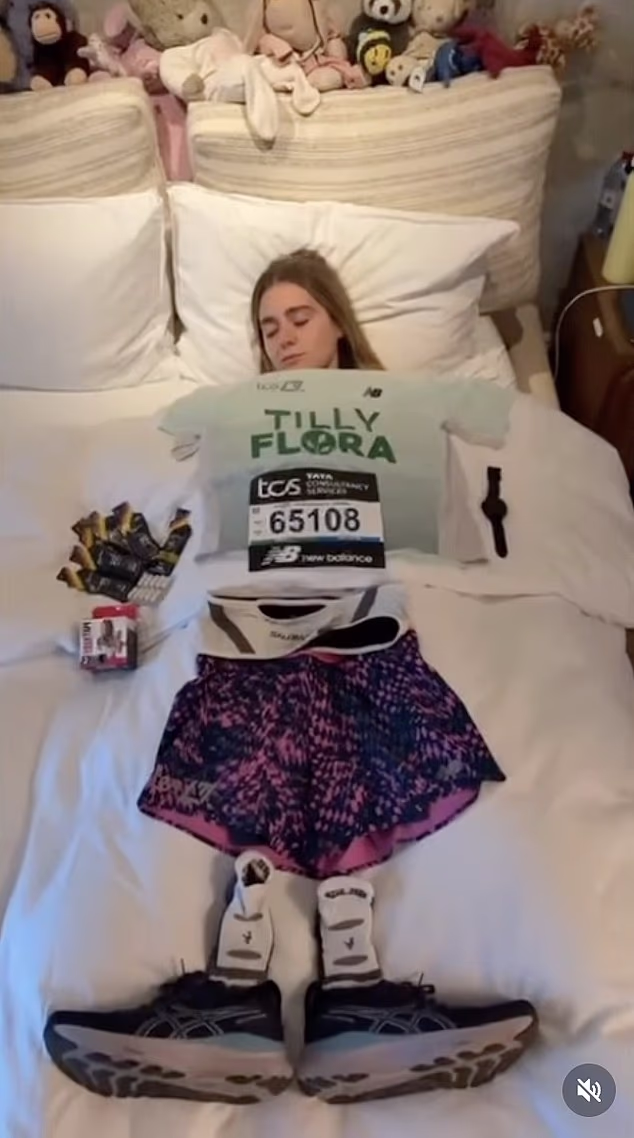 Em uma postagem, Tilly disse anteriormente: ‘Este mês estou correndo a TCS London Marathon com @flora arrecadando dinheiro para @feeding_britain’, escreveu ela no Instagram.