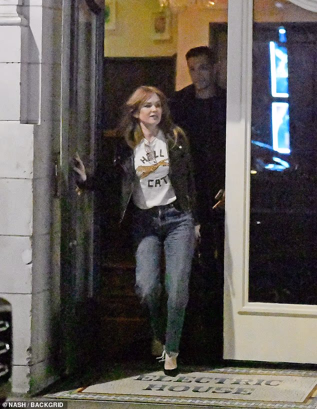 Larry colocou um braço protetor em volta de Isla quando eles deixaram o estabelecimento juntos