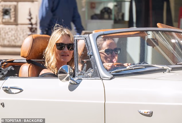 Kate Moss foi flagrada dirigindo por Londres em um MG conversível branco na semana passada