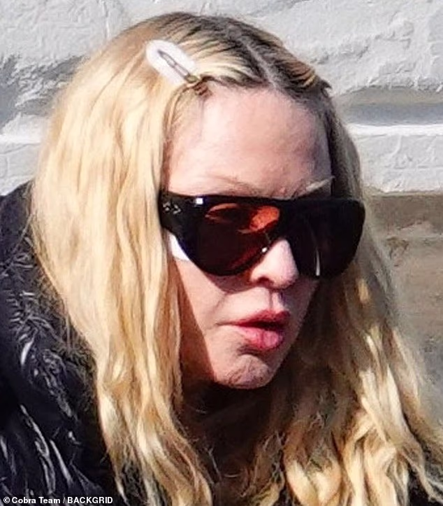 Madonna revelou uma misteriosa bandagem branca sob o olho direito enquanto se aventurava em Veneza na quinta-feira.