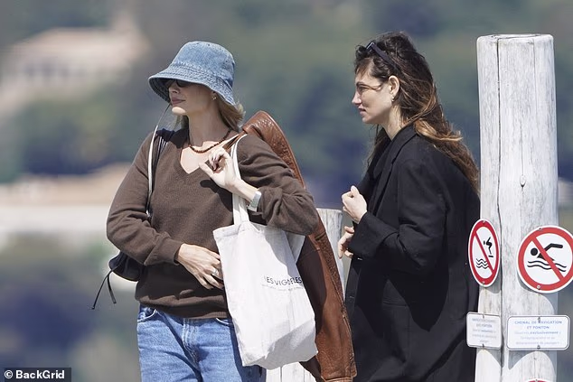 As atrizes foram flagradas conversando enquanto chegavam de barco e caminhavam pela praia até o restaurante.