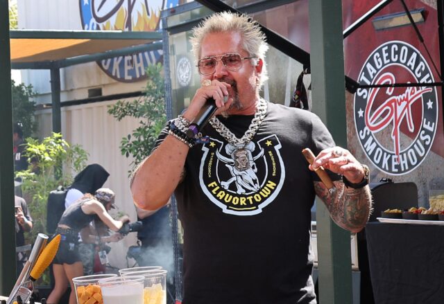 “Todo mundo adora comida. Esse é o denominador comum”, disse Fieri à multidão, que incluía uma mulher que se vestia de maneira impressionante como Fieri, com bigode/cavanhaque falsos e uma camisa de boliche coberta de chamas.
