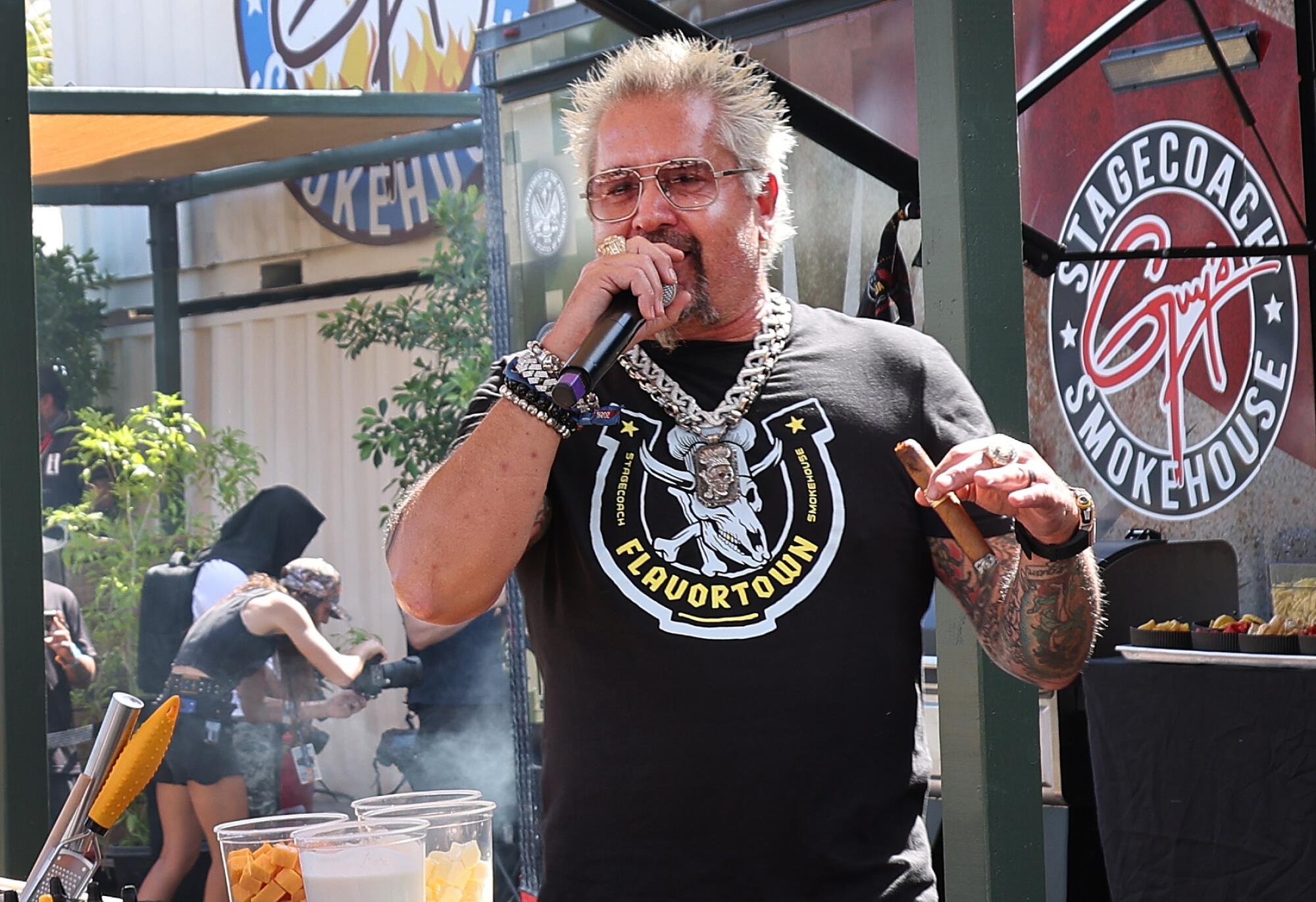 Man Fieri apresenta seu mais recente prato de fumeiro durante o Stagecoach Nation Music Pageant.