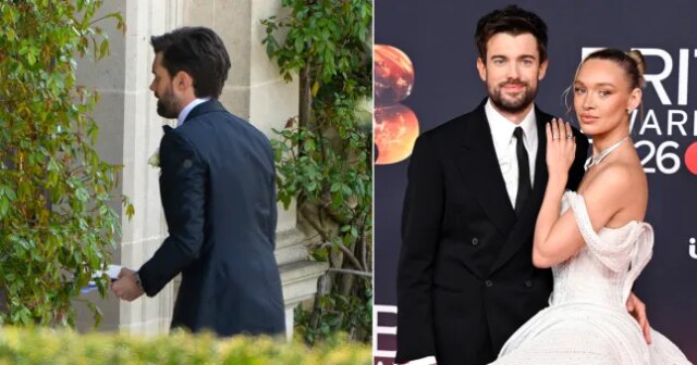 Quanto a Jack, ele usava um tradicional terno preto com lapela de flores e sapatos Christian Louboutin de £ 800.