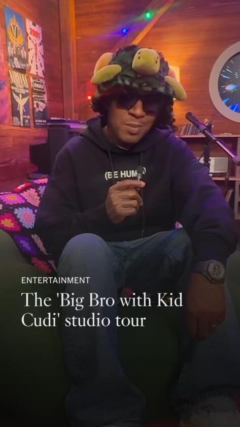 O sótão com tema dos anos 90, que ele diz ser uma metáfora para sua mente, serve de pano de fundo para seu mais recente projeto: um podcast chamado “Large Bro With Child Cudi”, com estreia na quarta-feira pela Wave Sports activities and Leisure.