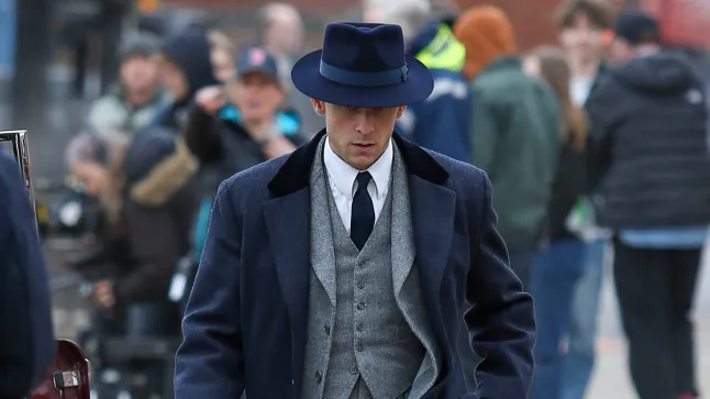 Com o cenário vestido para replicar o ano, o personagem de Jamie foi visto chegando em um Jaguar do lado de fora de um prédio com a marca ‘Shelby Development’ neste fim de semana, seguido de uma explosão.