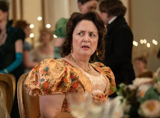 Ainda assim, mesmo familiarizada com Orgulho e Preconceito, a versão de Ruth da Sra. Bennet assume uma vida própria (bastante brutal).