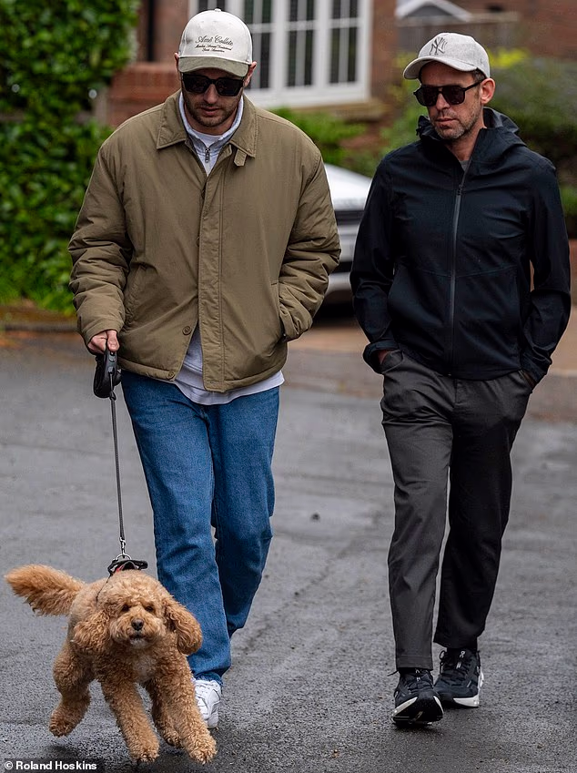 Mills e Vaughan finalmente saíram de sua propriedade de cinco quartos em Hertfordshire, no valor de £ 1,5 milhão, para passear com seu precioso cavapoo dourado, Teddy.