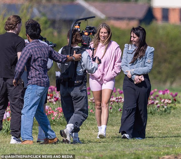 A estrela da BBC, de 36 anos, foi vista filmando cenas para Stacey e Joe na Scotts Tulip Farm em Brentwood, a poucos passos de sua casa de £ 1,2 milhão, Pickle Cottage.