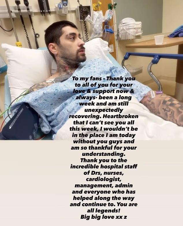 Zayn Malik compartilhou uma foto preocupante do hospital no Instagram na sexta-feira, onde revelou que “ainda está se recuperando” de uma doença desconhecida