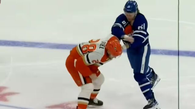 O ataque dos Maple Leafs de Toronto foi lançado no primeiro segundo de jogo contra o quebequense Jeffrey Viel durante a partida contra o Geese d’Anaheim.