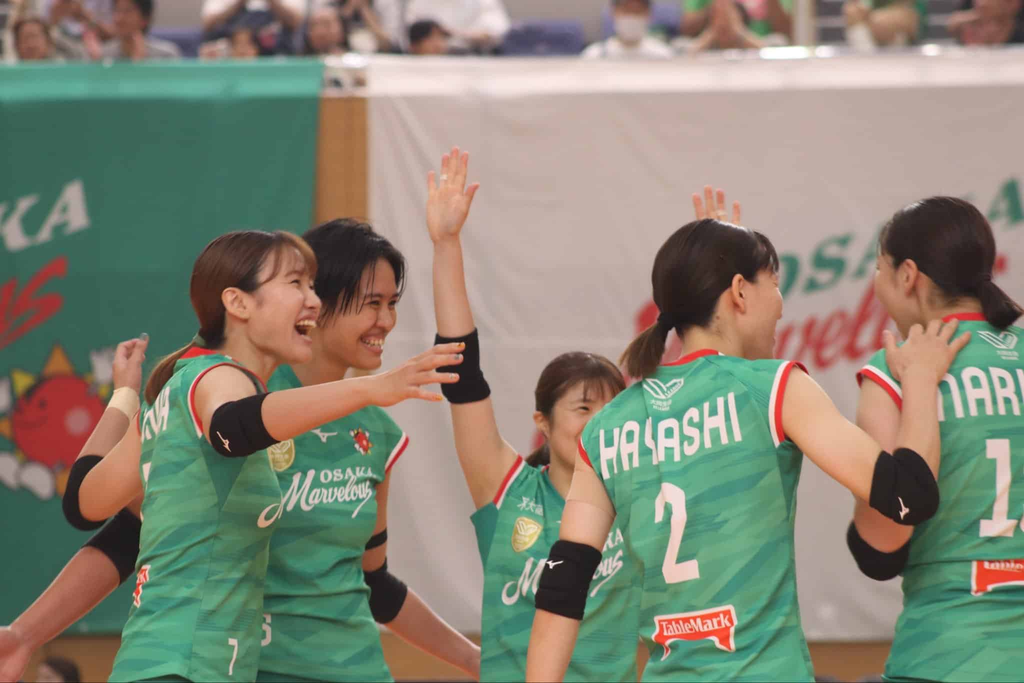 Alyssa Solomon e Osaka Marvelous comemoram vitória na SV.League no Japão. – Foto de Osaka Marvelous