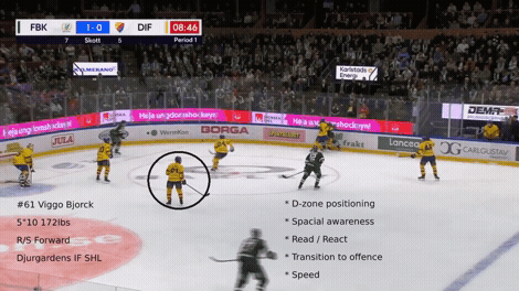 O segundo clipe também mostra como Bjorck auxilia defensivamente e escapa de baixo na zona defensiva, ataca fora do rush e termina como F1 na verificação antes que o disco acabe fora de jogo: