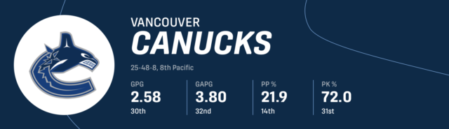 Uma das luzes brilhantes para Vancouver, no entanto, foi o impacto que Linus Karlsson teve em sua primeira temporada completa na NHL. Ele tem que crescer defensivamente, mas foi impressionante ver os totais ofensivos que ele apresentou (15 gols, 35 pontos) em relação ao tempo médio no gelo por jogo (12:27). Também é importante notar que Karlsson marcou 13 de seus gols com força igual e que também foi creditado com 83 rebatidas no ano.