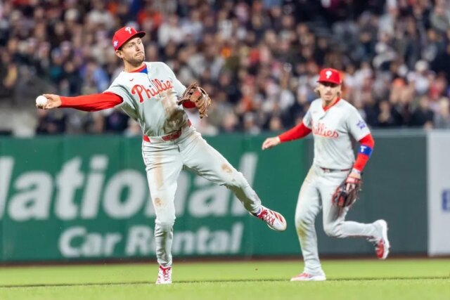 Alec Bohm seguiu com um sinal verde duplo, marcando Schwarber, e Brandon Marsh fez o 6-4 com um sacrifício do terceiro arremessador do Giants, Caleb Kilian.