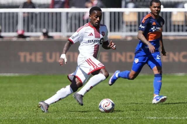Kenji Mboma Dem marcou o gol do empate após uma assistência de Ayoub Jabbari nos acréscimos do segundo tempo, quando o visitante do FC Cincinnati empatou por 1 a 1 com o Toronto FC, na tarde de sábado.