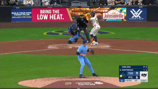 Chegue ao ultimate da 10ª entrada na terça-feira, enquanto Louis Varland tentava fechar a porta para uma vitória de retorno dos Blue Jays. William Contreras acertou uma bola fraca e curta que poderia ter encerrado o jogo. Mas Okamoto avançou muito para a esquerda, cortando o shortstop Andres Gimenez e desviando a bola, que acabou no campo esquerdo quando uma corrida foi marcada. Varland precisava fazer mais sete arremessos para sua terceira eliminação.