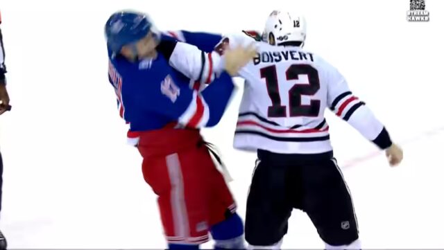 Rien n’allait for les Hawks, que perdeu 6 a 1 no last da partida contra o Rangers de Nova York quando Boisvert decidiu common suas contas com o defensor Will Borgen durante uma luta corpo a corpo.
