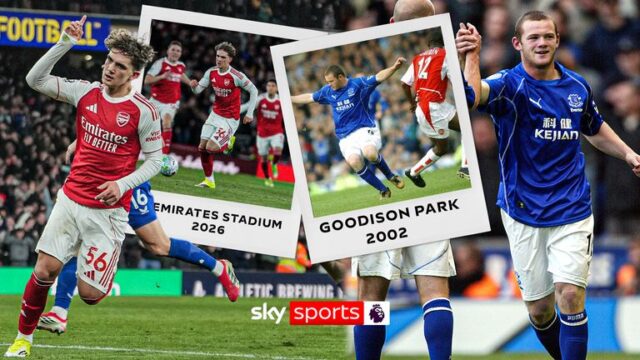 Uma visão em tela dividida de como o gol de Max Dowman pelo Arsenal no sábado se compara ao gol sensacional de Wayne Rooney, de 16 anos, contra os Gunners em 2002