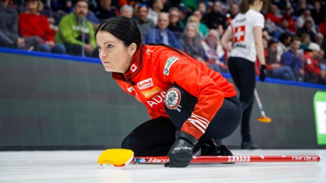 A equipe canadense de curling de Kerri Einarson perdeu seu primeiro jogo do campeonato mundial feminino com uma derrota por 6 a 5 na prorrogação para a Suíça na noite de terça-feira.