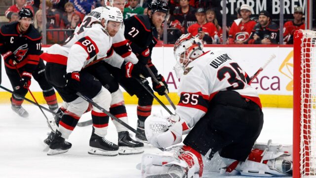 Em uma das sequências mais caóticas que você já viu, os Ottawa Senators conseguiram sobreviver a um segundo período de prorrogação contra o Carolina Hurricanes no jogo 2 na segunda-feira.