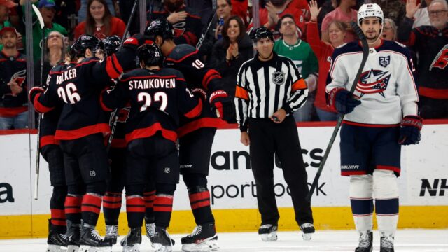 RALEIGH, NC – Logan Stankoven marcou dois gols nos primeiros nove minutos, e o Carolina Hurricanes garantiu uma vaga nos playoffs pela oitava temporada consecutiva ao derrotar o Columbus Blue Jackets por 5 a 1 na noite de quinta-feira.