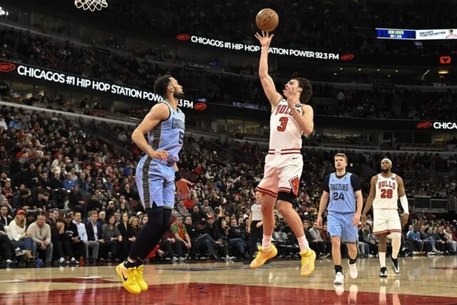 Matas Buzelis marcou 18 de seus 29 pontos no terceiro quarto e Josh Giddey contribuiu com 16 pontos, 15 rebotes e 13 assistências para levar o anfitrião Chicago Bulls à vitória por 132-107 sobre o Memphis Grizzlies na segunda-feira.