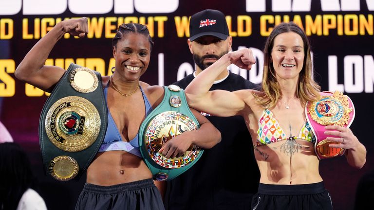 Caroline Dubois e Terri Harper subiram na balança antes da unificação do campeonato mundial no domingo.