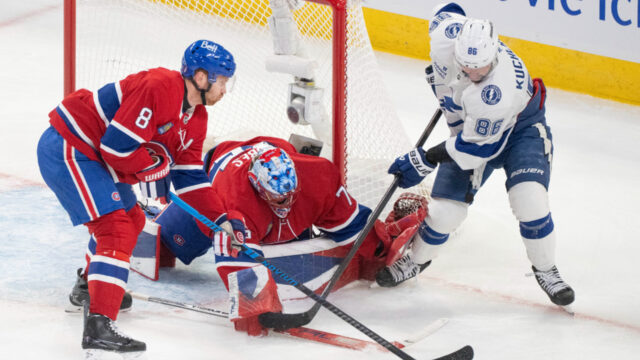 Então, no segundo período, depois que Brayden Level e Brandon Hagel marcaram para dar a liderança ao Lightning, Kirby Dach encaixotou seu primeiro da série para igualar o placar.