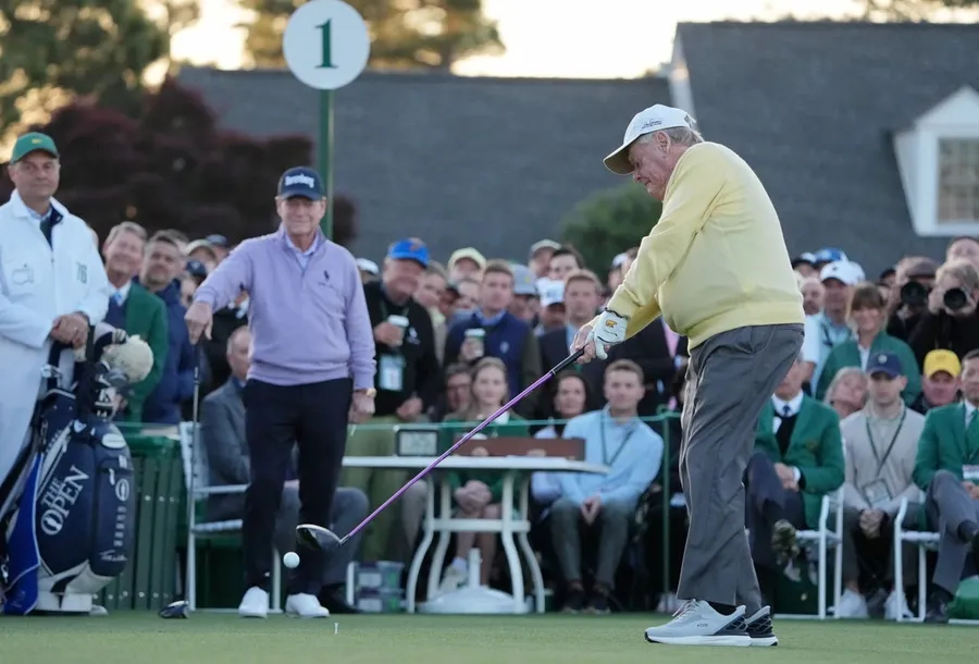 Pouco depois do nascer do sol no Augusta Nationwide Golf Membership, o trio de lendas do golfe emergiu da icônica sede do clube sob aplausos retumbantes dos clientes reunidos em uma manhã fria em Augusta.