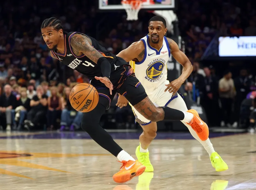 O Suns, que acertou 52,4% no primeiro quarto, teve dificuldades no segundo quarto enquanto os Warriors recuperavam.