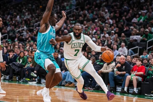 Jaylen Brown marcou 35 pontos e pegou nove rebotes para impulsionar o Boston Celtics à vitória por 113 a 102 sobre o visitante Charlotte Hornets na noite de terça-feira.