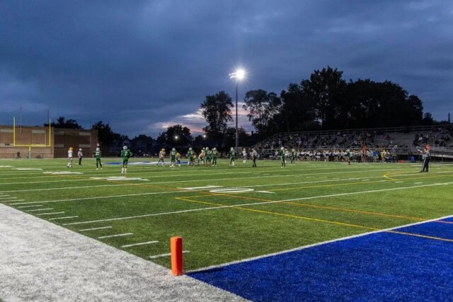 Uma visão geral durante o jogo de futebol americano da escola secundária South Bend Riley-South Bend Washington na sexta-feira, 23 de setembro de 2022, no TCU College Discipline em South Bend, Indiana. South Bend Riley x South Bend Washington