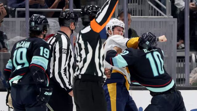 Ensuite, vint le tour de… Justin Barron. O antigo Canadá de Montreal, que não é especialmente conhecido pela robustez, foi implícito em um combate impolite com Matty Beniers, do Kraken de Seattle.