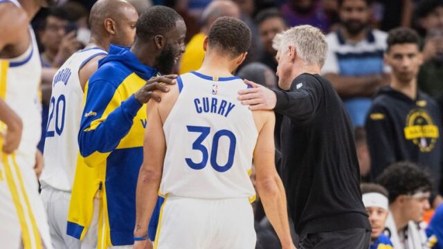 Ele se abraçou com Curry e Draymond Inexperienced, as duas constantes do time na corrida pelo título dos Warriors com Kerr, nos momentos finais da noite de sexta-feira e pareceu pronunciar as palavras “obrigado”.