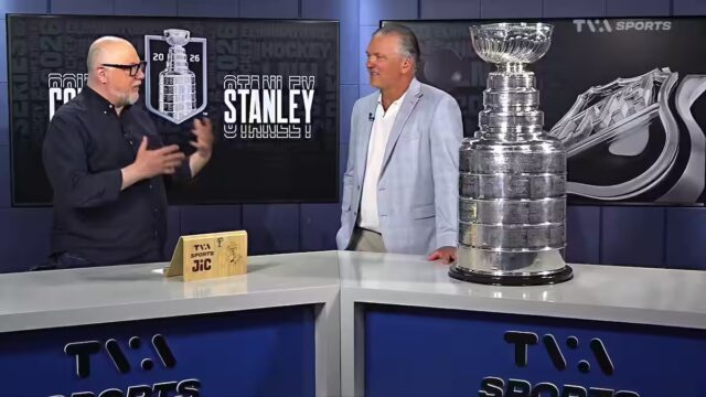 A presença do cupê Stanley nos estúdios da TVA, lundi, um rapel de três belas lembranças ao antigo jogador do LNH Philippe Boucher.