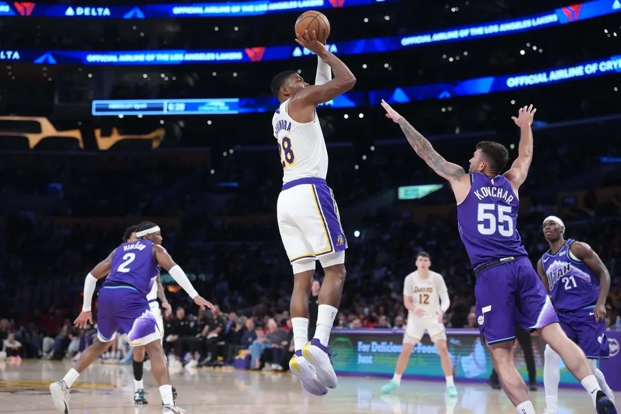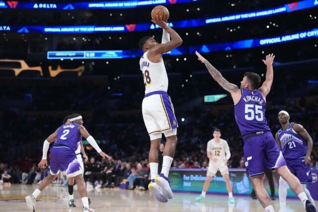 Depois que a bandeja de Williams reduziu o déficit de Utah para 19, Knecht enterrou triplos consecutivos e Jarred Vanderbilt mergulhou para ampliar a vantagem para 107-80 com 8:22 restantes. A bandeja do reserva Chris Manon a 3:30 do fim garantiu que todos os 14 jogadores do Los Angeles marcassem na vitória desigual.