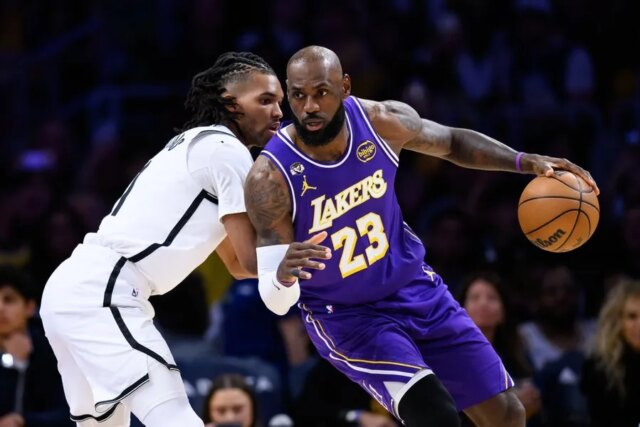 O Nets perdia por um no ultimate do terceiro quarto, antes de Los Angeles assumir o controle no quarto. Reaves acertou três cestas de 3 pontos e marcou 11 pontos durante uma sequência de 14-4 para dar ao Lakers uma vantagem de 103-94 faltando 5:02 para o fim.