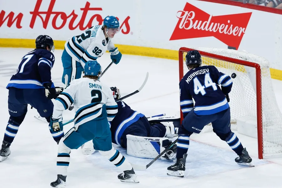 Macklin Celebrini marcou um gol e duas assistências para se tornar o líder da franquia dos Sharks em pontos em uma única temporada, levando o San Jose à vitória por 6 a 1 sobre o anfitrião Winnipeg Jets na quinta-feira, no ultimate da temporada para ambos os instances.