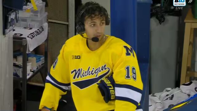 Os jogadores dos Wolverines não foram alugados. Eles assistiram de fato aos vendedores na cerimônia de entrega do troféu Hobey Baker em Las Vegas. O capitão da Universidade de Michigan, TJ Hughes, está entre os finalistas desta honra, o jogador por excelência da NCAA.