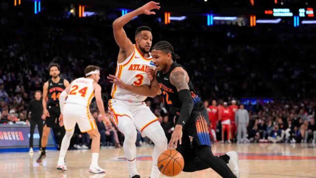 NOVA YORK – CJ McCollum marcou 32 pontos e o Atlanta Hawks se recuperou para surpreender o New York Knicks por 107 a 106 na noite de segunda-feira, empatando a série de playoffs da primeira rodada com um jogo cada.