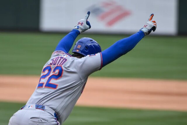 Soto, de 27 anos, acertou a segurança em todos os oito jogos que disputou em 2026, tem uma média de rebatidas de 0,355 e uma porcentagem de rebatidas na base de 0,412.